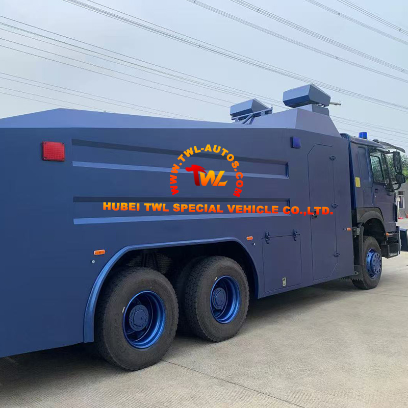 The 6X4 Riot Control Water Cannon Truck is a specialized public order and crowd management vehicle designed and manufactured by Hubei TWL Special Vehicle Co., Ltd. Built on a robust 6X4 heavy-duty chassis, this vehicle integrates a high-capacity water reservoir and a powerful, remotely operated water cannon system. Engineered for durability, operational effectiveness, and crew safety, it serves as a critical asset for law enforcement, military police, and civil defense units in maintaining public safety during large-scale gatherings, protests, or emergency situations.