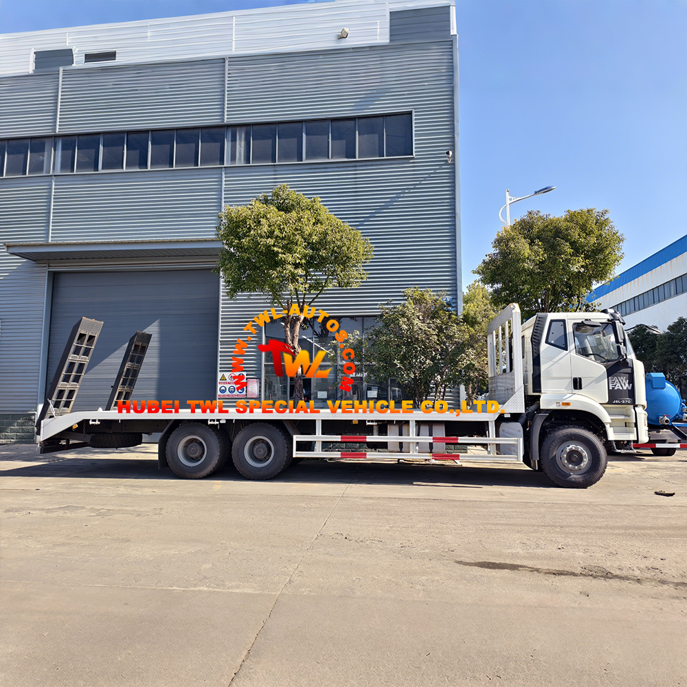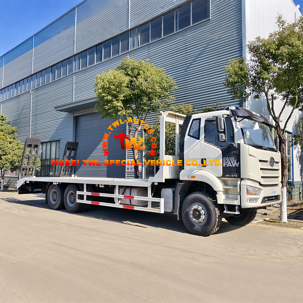 The FAW J6P 370HP 6×4 Flatbed Transport Truck is a purpose-built heavy-duty vehicle designed to address the critical logistics needs of construction, agricultural, and industrial operations. Recognizing that the transport of heavy machinery and oversized equipment requires exceptional structural integrity, load capacity, and practical design features, FAW has engineered this vehicle to deliver reliable performance in the most demanding conditions. The vehicle’s design philosophy centers on three core principles: structural strength for heavy loads, practical utility for efficient loading and unloading, and durability for long service life in harsh operating environments.
