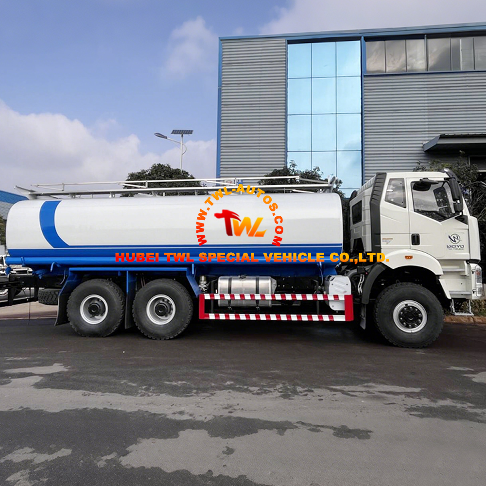 Engineered for the most demanding fuel transport operations in challenging terrains, the FAW J6P 6x6 25,000L Fuel Delivery Truck combines exceptional off-road capability with substantial payload capacity. Powered by a 390HP turbocharged diesel engine and featuring a 6x6 all-wheel drive configuration, this heavy-duty tanker is purpose-built for mining sites, construction projects, oil fields, and remote fuel supply operations where conventional 4x2 or 6x4 trucks cannot operate effectively.