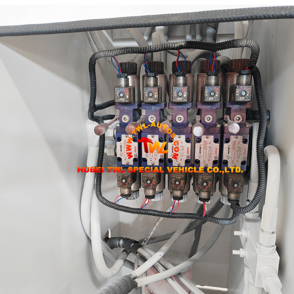 For maximum safety during operation, the vehicle features H-type front and rear outriggers. All four stabilizers are equipped with hydraulic locking devices, securing the platform firmly on the ground. The hydraulic system itself is designed with redundancy in mind, incorporating 11 oil cylinders and bidirectional balance valves or hydraulic locks on critical functions to prevent accidental movement.