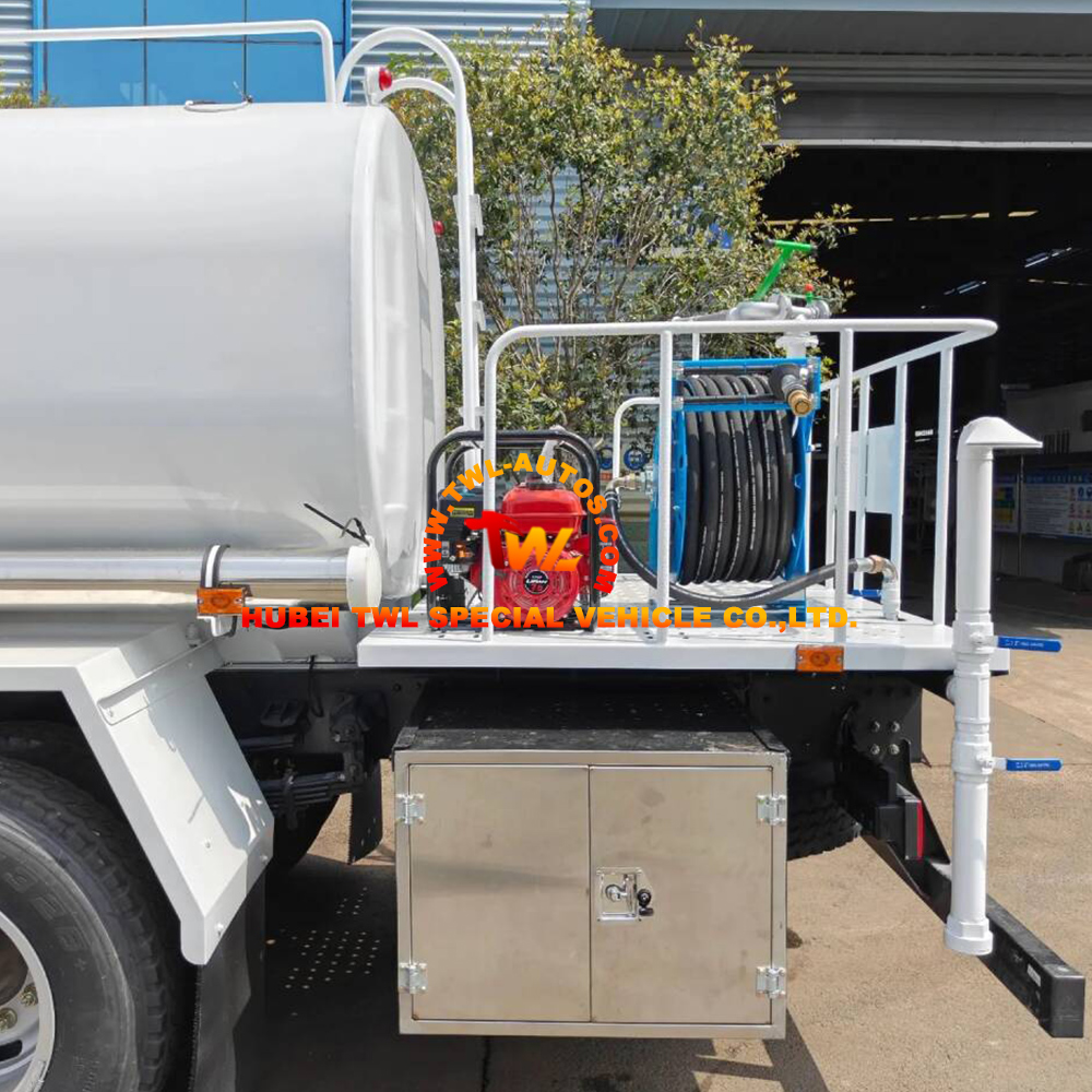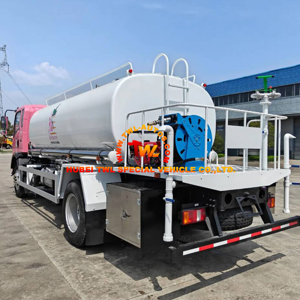 · 10m³ Large-Capacity Water Tank: High-quality carbon steel construction with anti-corrosion treatment. Uniform load distribution ensures driving stability. Ideal for long-distance water delivery and large-area sprinkling.