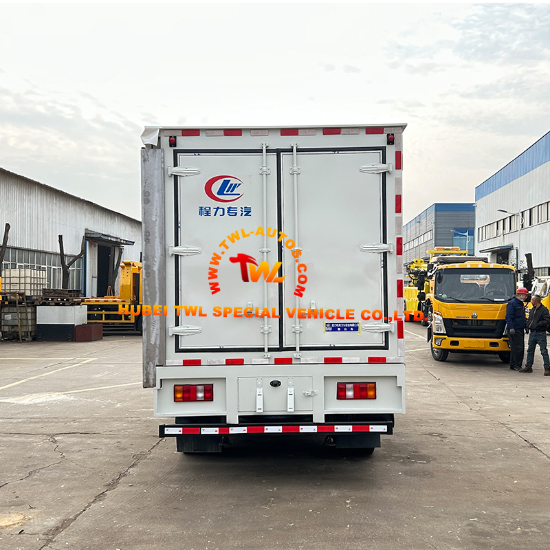 | Body Material | Rectangular tube frame; outer cladding with 1.2mm cold-rolled steel sheet; floor with 1.5mm anti-slip patterned plate; base anti-rust paint; exterior white special vehicle paint; body gray paint |