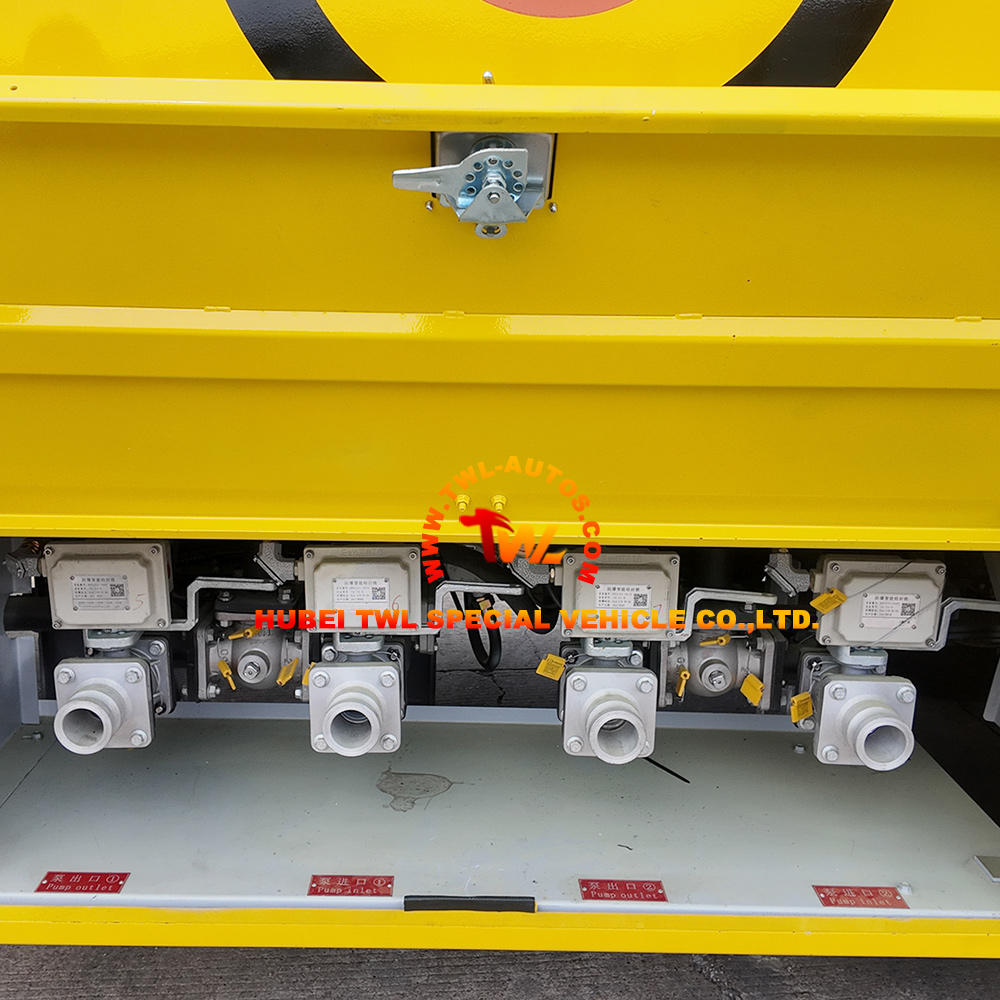 High-accuracy flow meters combined with IoT sensors ensure precise fuel measurement and real-time data tracking. The dual oil pump system supports both pump-in (loading fuel from depot storage) and pump-out (discharging fuel to ground tanks or equipment), providing flexibility for daily operations, emergency drainage, and maintenance.