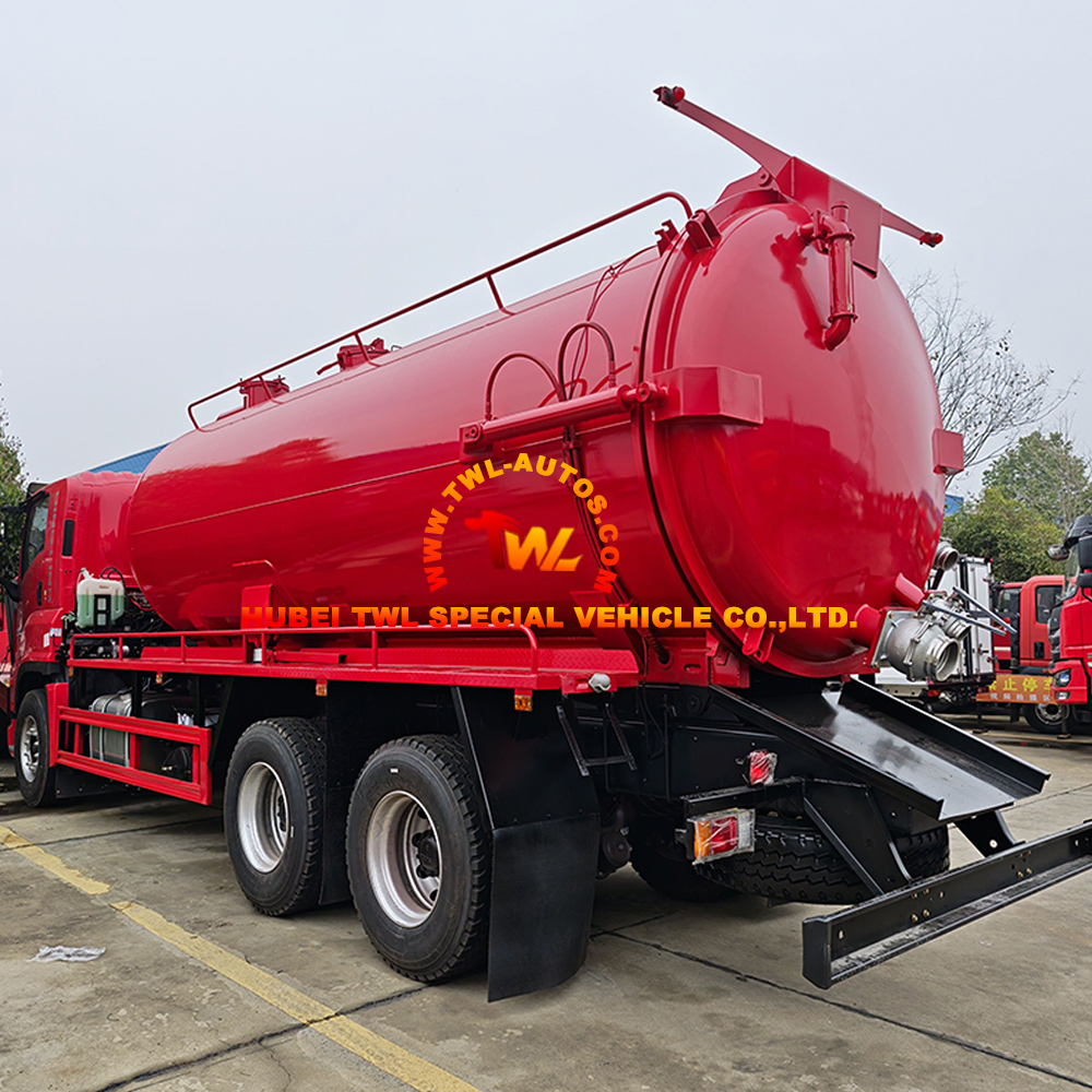 Engineered for demanding municipal and industrial waste management applications, the ISUZU 6x4 Sewage Suction Truck combines a world-renowned ISUZU heavy-duty chassis with a large-capacity 15-20m³ carbon steel tank and a high-efficiency water cycle suction pump. Designed for sewage and sludge treatment in urban and industrial areas, this vehicle delivers powerful suction, stable operation, and exceptional durability for environmental protection agencies, municipal departments, and engineering contractors.