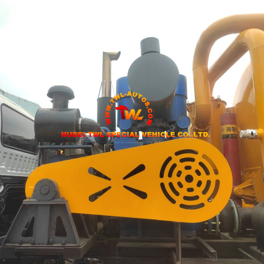· High-Efficiency Vacuum System with Dedicated Weifang 420 HP Auxiliary Engine: The vacuum system is powered by a dedicated Weifang 420 HP auxiliary engine driving a 6000 L/H Roots blower, delivering exceptional suction capability for sludge, gravel, and viscous wastes. The system achieves a suction depth of 8 meters or more, enabling effective extraction from deep manholes and underground structures. The DN200 inlet and outlet pipes and DN150 oblique suction port facilitate handling of large-particle waste.