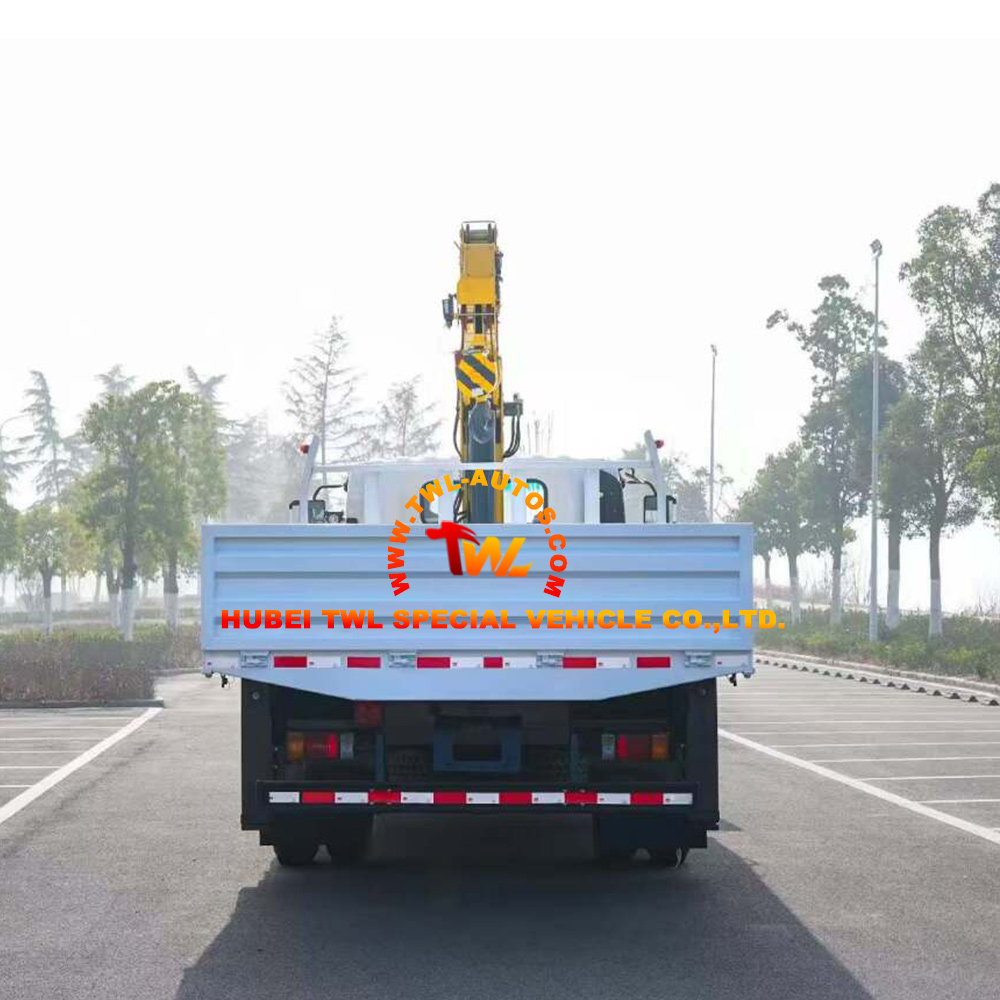 · 5,000kg Hydraulic Crane: The truck-mounted crane has a maximum lifting capacity of 5,000kg (5 tons) and a lifting moment of 12.5 t·m. The 360° continuous rotation allows operators to position loads precisely without repositioning the vehicle.