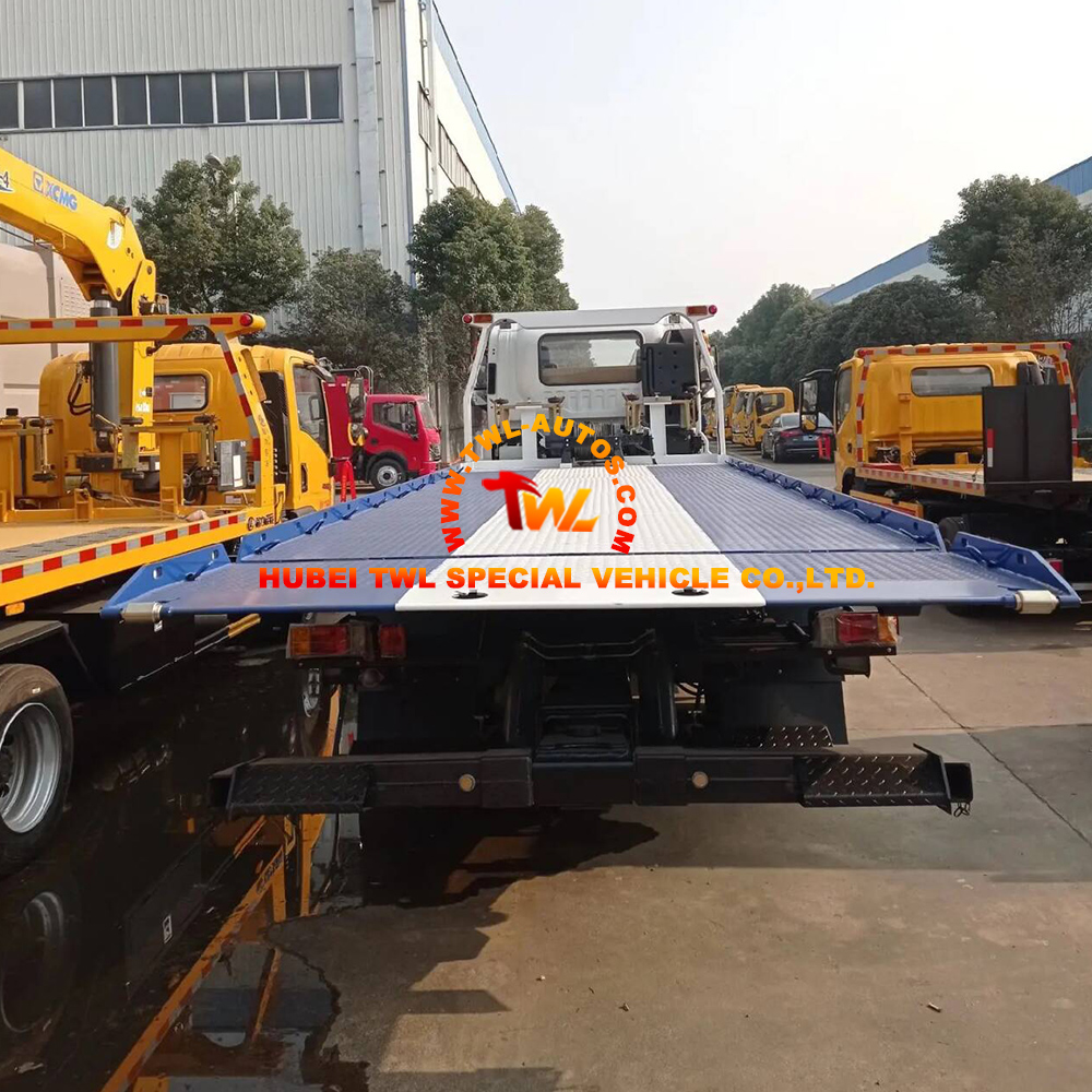 The Isuzu FTR Flatbed Tow Truck is a purpose-built professional recovery vehicle designed for towing companies, roadside assistance providers, and municipal fleets requiring reliable, efficient vehicle recovery capability. Built on the proven Isuzu FTR 4×2 chassis with a 5-meter wheelbase for excellent urban maneuverability, this vehicle features a 205HP Isuzu diesel engine that delivers a strong balance of power and fuel efficiency across varied terrains and climate conditions. The one-tow-two recovery system combines an 8-ton flatbed capacity, 8-ton rear tow arm, and 8-ton winch, enabling recovery of a wide range of vehicles from light trucks to large vans and buses. The 7.2-meter flatbed deck provides ample space for most commercial vehicles targeted in recovery operations. The twin-deck (one-tow-two) design allows for multi-vehicle transport or simultaneous recovery, maximizing operational efficiency for busy towing companies. Isuzu’s extensive international dealer and service network ensures easier maintenance, parts availability, and technical support worldwide. Designed to meet strict Japanese quality standards, this wrecker can be adapted to comply with various regional regulations for lighting, braking, and emissions, making it suitable for both developed markets requiring high reliability and emerging markets needing robust performance in tough conditions.