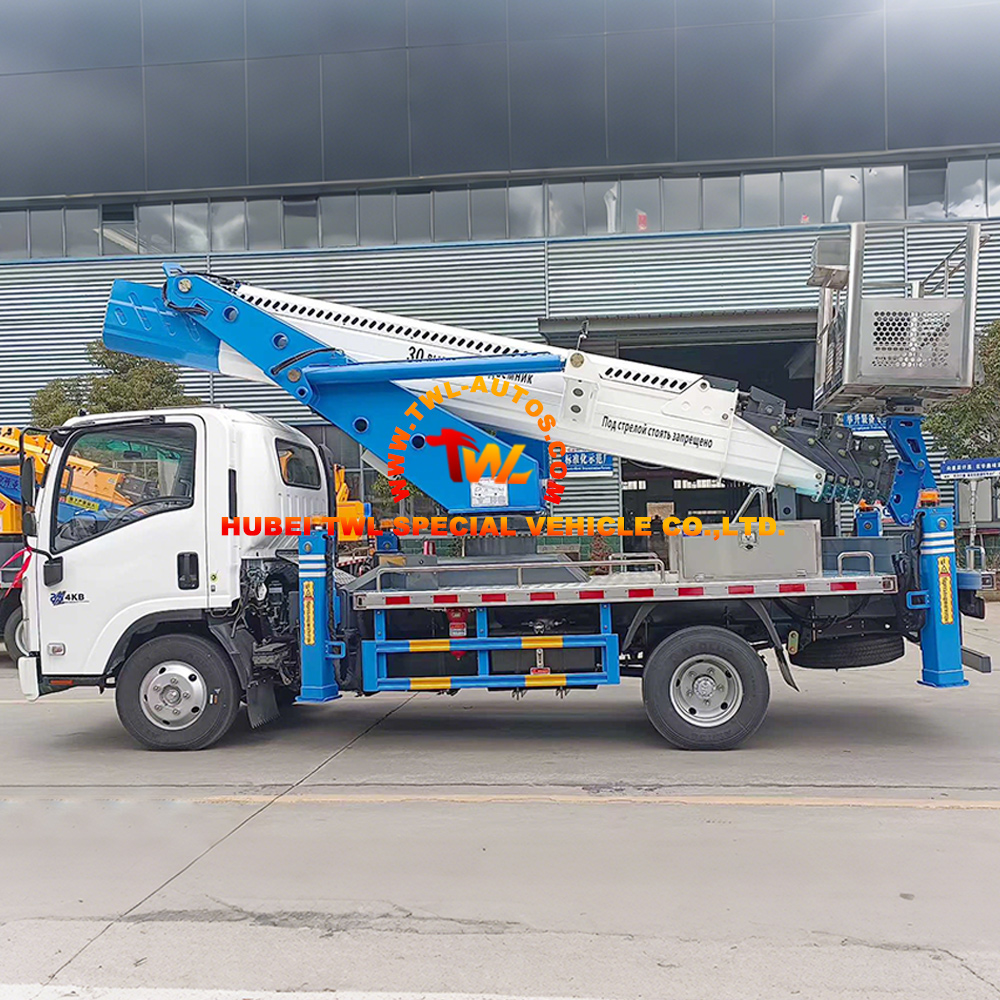 The Isuzu KV100 30m Truck Mounted Aerial Work Platform combines the legendary reliability of the Isuzu KV100 chassis with a high-performance 30-meter telescopic boom system. Built to meet rigorous National VI emission standards, this aerial work truck delivers exceptional stability and reach for demanding high-altitude operations. Featuring a 6-section 14-sided polygonal boom and a robust Front V and Rear V outrigger configuration, it ensures operator safety and precision across a wide working range. Whether for municipal maintenance or construction, this Isuzu-based manlift is engineered for durability and efficiency.