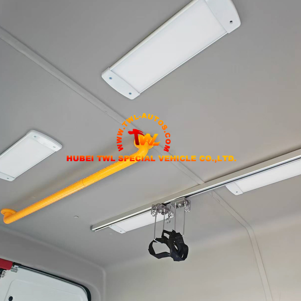 Medical Rails: Overhead IV/Infusion rails for fluid administration during transit.