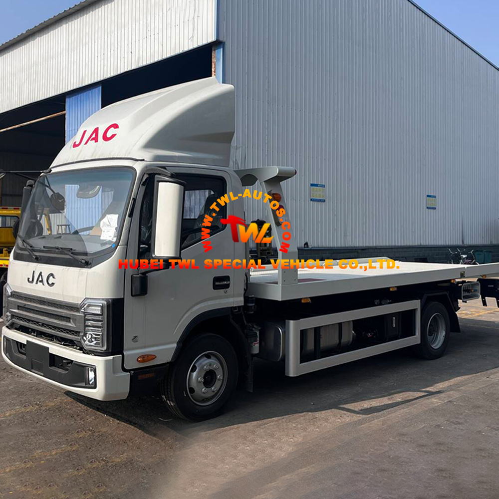 This JAC 4-ton flatbed recovery truck provided by TWL is built on a dependable JAC chassis with a 3.8-meter wheelbase and is designed for professional vehicle recovery, roadside assistance, and light-duty towing operations. The one-to-two flatbed superstructure allows flexible handling of different vehicle types, making it a practical solution for urban and intercity rescue tasks.