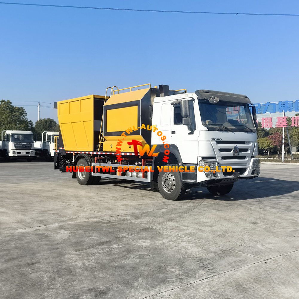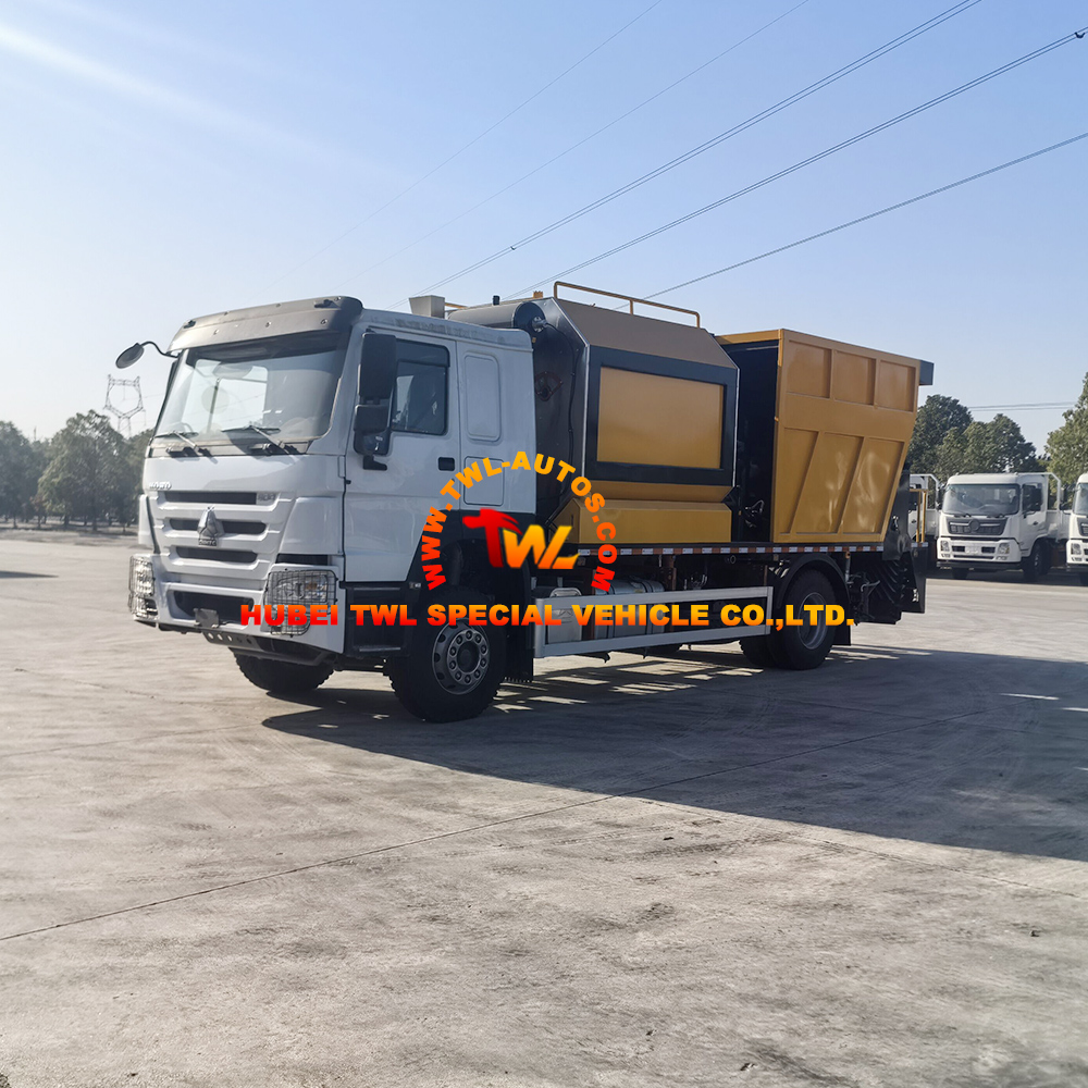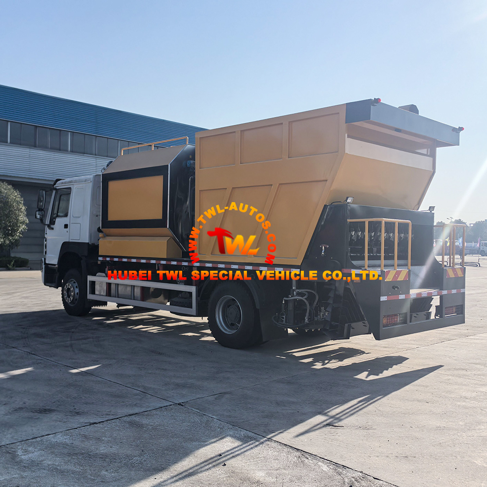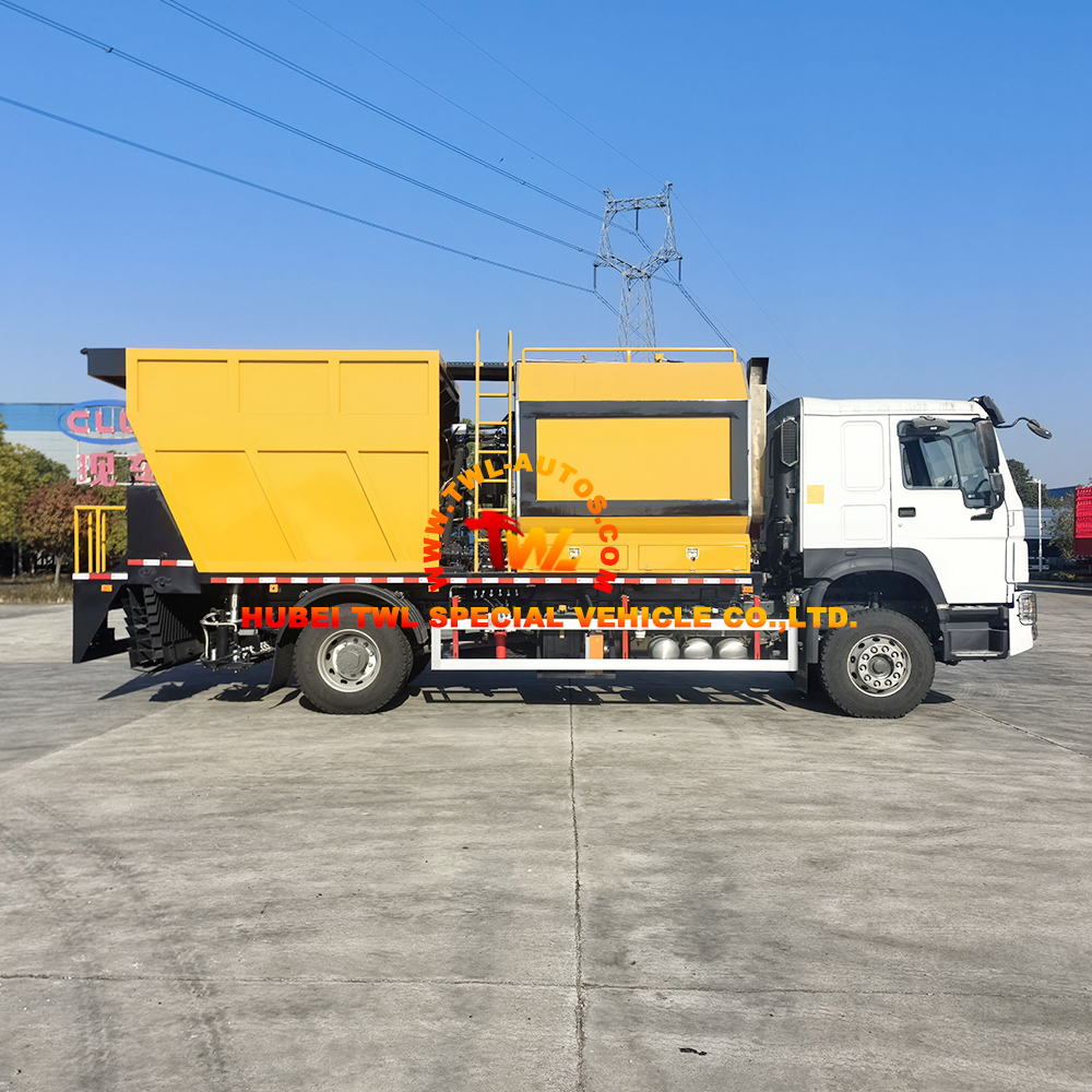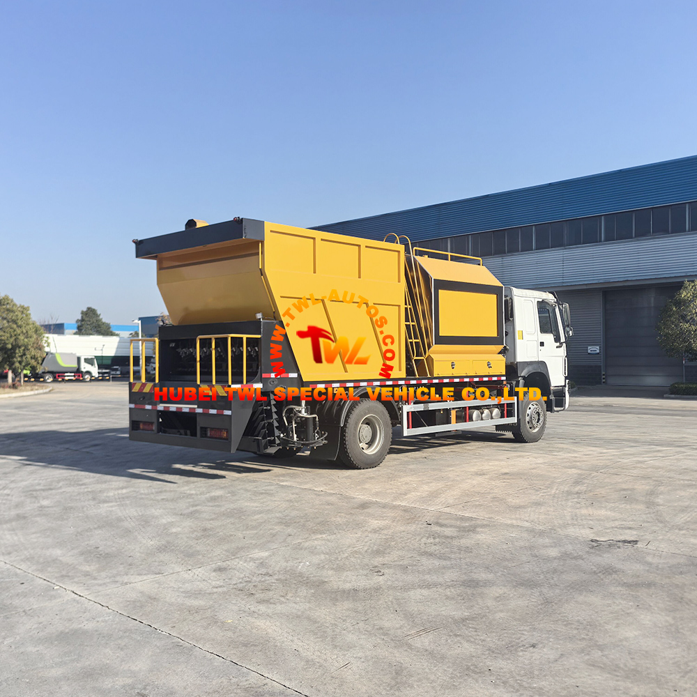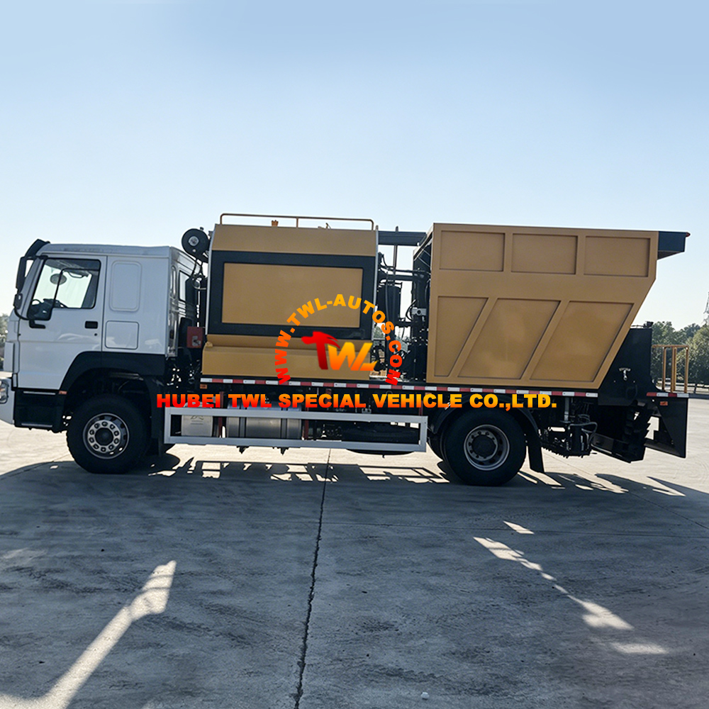 The Sinotruk HOWO Synchronous Chip Sealer is a professional-grade pavement preservation vehicle that integrates asphalt spraying and aggregate spreading into a single, synchronized operation. Unlike traditional methods that apply asphalt and aggregate separately, this synchronous technology ensures that aggregate chips are embedded into the asphalt binder immediately after spraying, creating a strong mechanical bond that resists raveling, delamination, and moisture damage. Built on the proven HOWO 4×2 chassis with a powerful diesel engine, this vehicle features a high-capacity asphalt tank, a hydraulically driven aggregate hopper, a precision spreading auger, and an advanced control system for uniform application. This vehicle is widely used for chip seal, slurry seal, micro-surfacing, and tack coat applications on highways, urban roads, bridges, and airport runways.