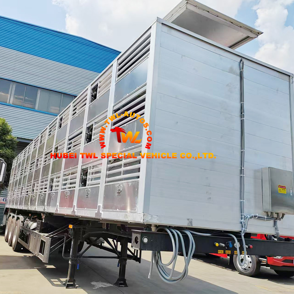 Constructed with high-strength aluminum alloy profiles, this semi-trailer is designed to withstand the rigors of long-haul transportation while remaining lightweight for increased payload. The intelligent layout includes a fully welded底板 (floor plate), hydraulic lifting mechanisms, and a comprehensive ventilation system to maintain a safe and comfortable environment for animals.