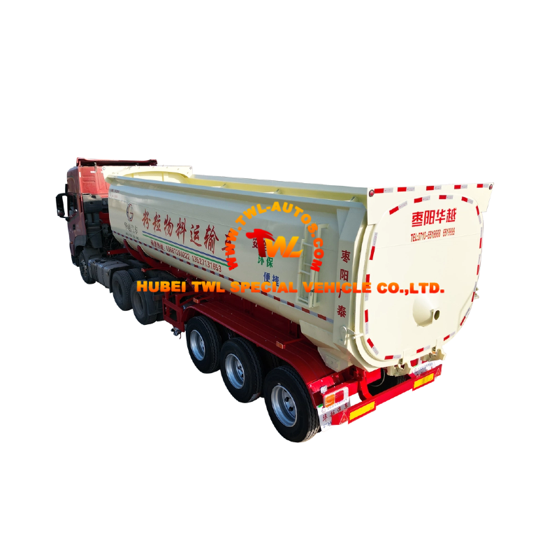 | Powder Tanker Trailer | Dry bulk powders | Sealed pressure tank | 30–80 CBM, pneumatic unloading, <2% residue | Cement, fly ash, flour, lime powder |